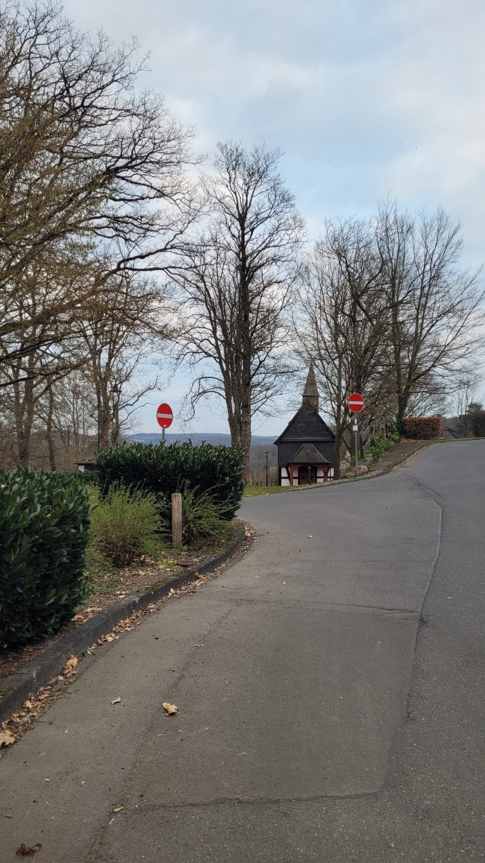 Du bist still heute, Kapelle. Hast du deiner großen Schwester den Vortritt gelassen? Oder blickst du auf die Baumgesellen und erinnerst dich an den Buchenwald, der dich vor Zeiten umgab, la hêtre, es ist die Buche, die dem Heister den Namen gab.