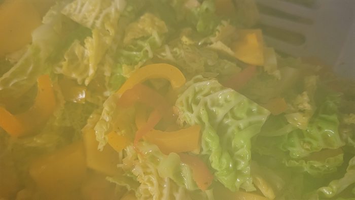 Sagen Sie mal, liebe Frau A., was machen sie denn, wenn vegetarisch Speisende spontan Aufenthalte verlängern? – Ach, wissen Sie, ich liebe Aufenthaltsverlängerungen, sie geben mir Gelegenheit, meine Übungen zu vertiefen. – Was für Übungen denn? – Na die, gleichzeitig fest und biegsam zu bleiben, wie ein Bambusrohr vielleicht. – Wie ein Bambusrohr? Sie machen mir Spaß. – Das ist gut, lachen Sie ruhig, ich liebe Lachen! Und die Eigenschaften von Bambus sind doch genial, hohe Druck- und Zugfestigkeit, hohe Stabilität bei gleichzeitig hoher Flexibilität, Biegsamkeit und Bruchfestigkeit, man kann damit leicht und langlebig bauen, ich mag das. Außerdem finde ich diese Süßgräser schön. Da fällt mir allerdings ein, hohl will ich nicht sein. – Aha, da bin ich dann doch froh, hohl ist nämlich doof, bei der menschlichen Spezies jedenfalls. Aber jetzt mal weg von diesem Exkurs und hin zum Praktischen! Wie handhaben sie das? – Ganz einfach, ich befrage meinen Kühlschrank, was er so hergibt. Und kreiere ein Curry. – Ein Curry? – Jaja, so ein Gericht, das sich aus der indischen und asiatischen Küche ableitet. Der Kühlschrank antwortete nämlich mit Wirsing, Paprika, Mango, Ingwer, Knoblauch, Zitrone. Und das Vorratskämmerchen kann auch mitreden und trägt Kokosnussmilch und Mango-Chutney bei. – Soso, und damit machen Sie was? – Ghee habe ich nicht, ich nehme eine Mischung aus gesalzener Butter und Olivenöl, erhitze sie sanft, dahinein rühre ich die winzigen Würfelchen frischen Knoblauchs und Ingwers, dazu Salz und die pulverisierten Gewürze (weißen Pfeffer, Koriander, Curcuma, eine zitronig-fruchtige Java-Curry-Mischung, etwas Kreuzkümmel und Kardamom), wenn das Gewürzpotpourri im Fett sich etwas sämig verbunden hat, darf sich der frisch gepresste Zitronensaft zu ihm gesellen, der hatte sich darauf schon so gefreut. – Freude befürworte ich. – Da bin ich ganz bei Ihnen, lieber Herr Spürnase. Und schauen Sie mal, bevor ich jetzt die geschnippelte Gemüse-Obst-Mischung in den Kochtopf gebe, muss ich Ihnen was zeigen. – Was denn? Ich bin gespannt.