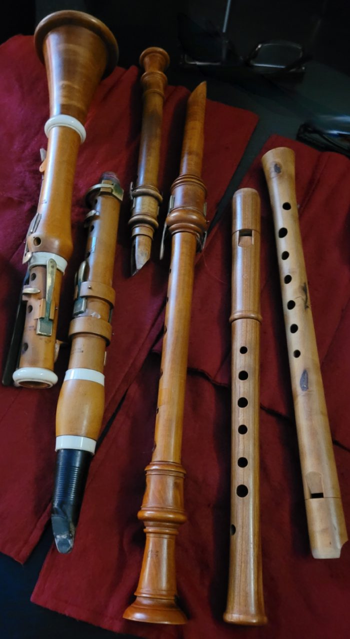 In diesem Jahr häufen sich allerlei Gedenktage, die man vielfältig würdigt, so auch der 150.Geburtstag des in Prag am 4.Dezember 1875 geborenen Rainer Maria Rilke. Mit welcher Musik die Rezitationen garniert sein würden, war der Ankündigung auf Plakaten und im VHS- Programm nicht zu entnehmen. Umso erfreuter lauschte ich (im dafür nicht unbedingt geeigneten Raum) dem ganz eigenen Wohlklang der aus Buchsbaumholz gefertigten und mit wenig Mechanik versehenen historischen Klarinette und dem ihrer Verwandten (Diskant-Chalumeau, Kynseker-Flöte), die Christian Leitherer virtuos und mit inniger Zuwendung zu spielen versteht. Leitherer gehört zu den wenigen europäischen Spezialisten für historisches Klarinettenspiel und ist in verschiedenen nationalen und internationalen Formationen tätig. Dass er in meiner nächsten Nähe wohnt, hatte ich nicht gewusst. Die Instrumente zu fotografieren, hat er mir im Anschluss an die Veranstaltung gestattet.