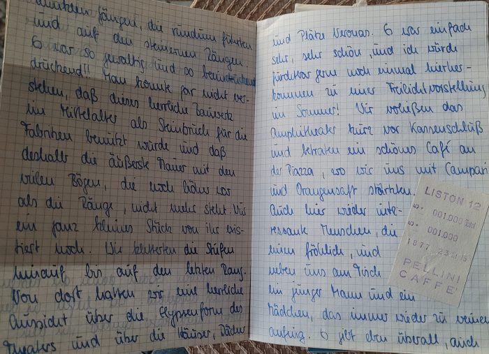 (NB.: der damals verschriftlichte Wunsch, zu einer Freilichtvorstellung im Sommer wiederzukommen, ist mir erhalten geblieben )