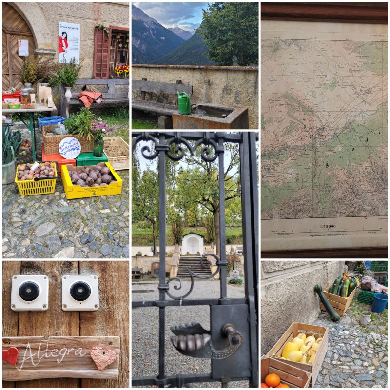 Um den Dorfbrunnen scharen sich Marktstände und bieten ein Destillat der Senter Essenz. Brotlaiber duften nach Anis, Nußtörtchen schlummern in Folien, Kürbisse schwelgen in Formen und Farben, Holz fügt sich zu Engeln und Ziegen, Thymian funkelt als dunkler Sirup, Kühe sind im Käse präsent und das Allegra tönt aus vielen Mündern.