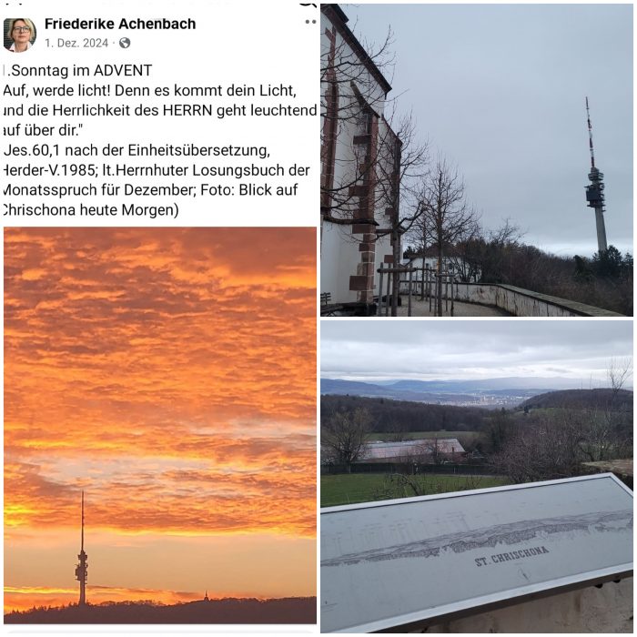 Das Jahr 2020, zu dem mir der Büroaufsteller geschenkt wurde, war ein Schaltjahr, mit 29 Tagen im Februar, jetzt ist mir auch klar, warum inzwischen im Gegensatz zum Beginn des Jahres 2025 der Wochentag nicht mehr mit dem Datum übereinstimmt, sondern immer einen Wochentag voraus ist. Das bedeutet aber auch, dass letztes Jahr der 1. Dezember ein Sonntag war. Etwa gleichzeitig der 1.Advent? Schauen wir mal nach, was der FB-Eintrag zum 1.Dezember 2024 sagt: